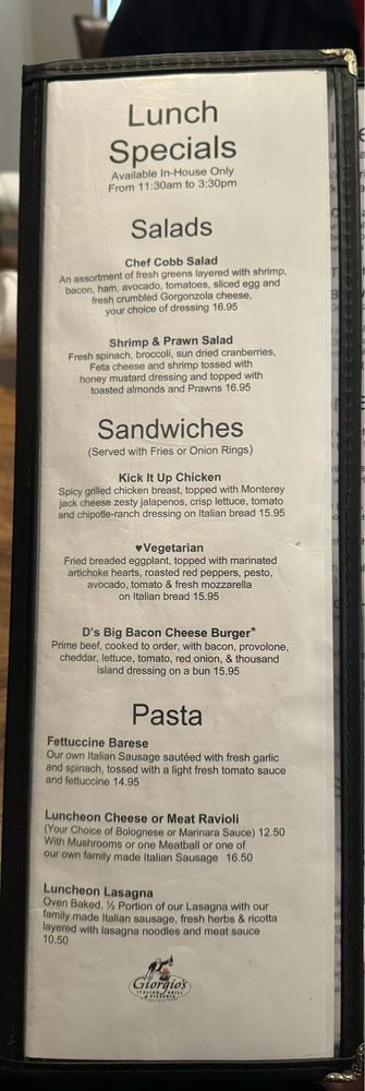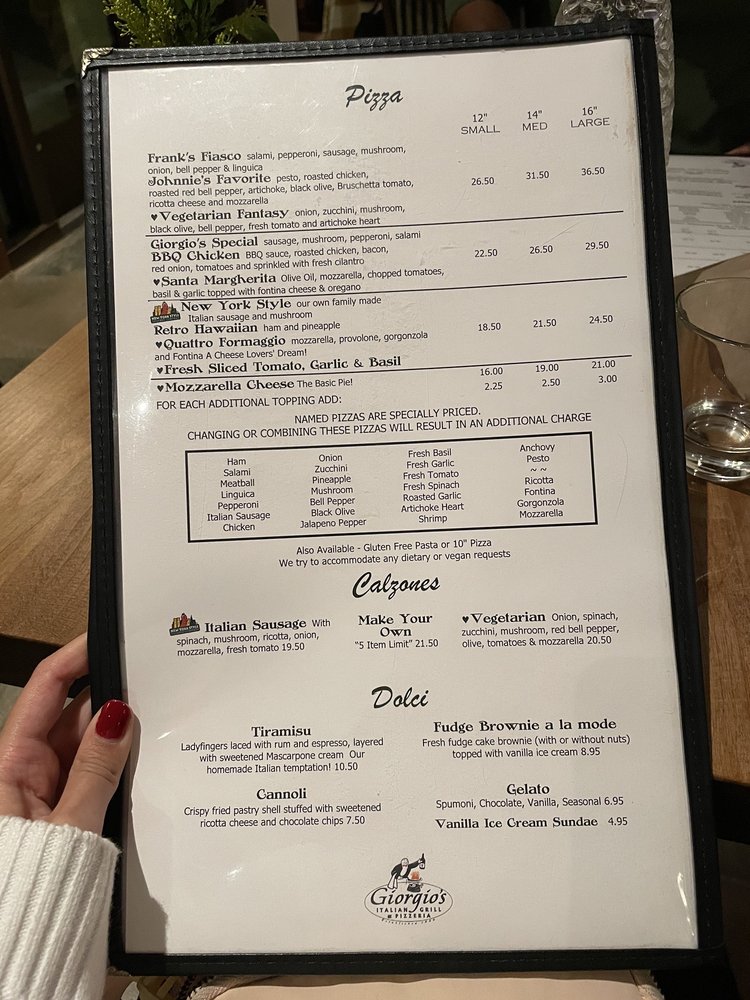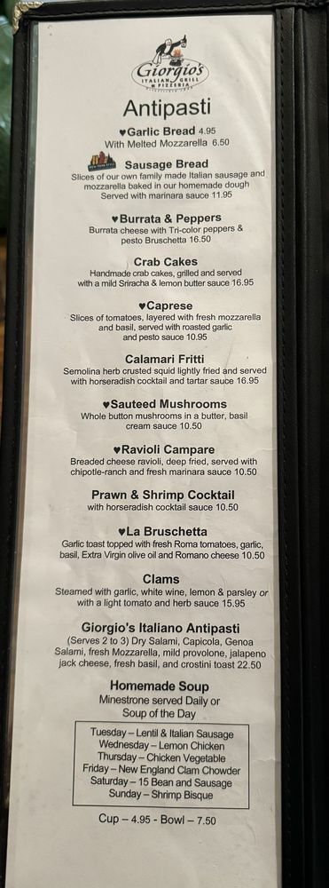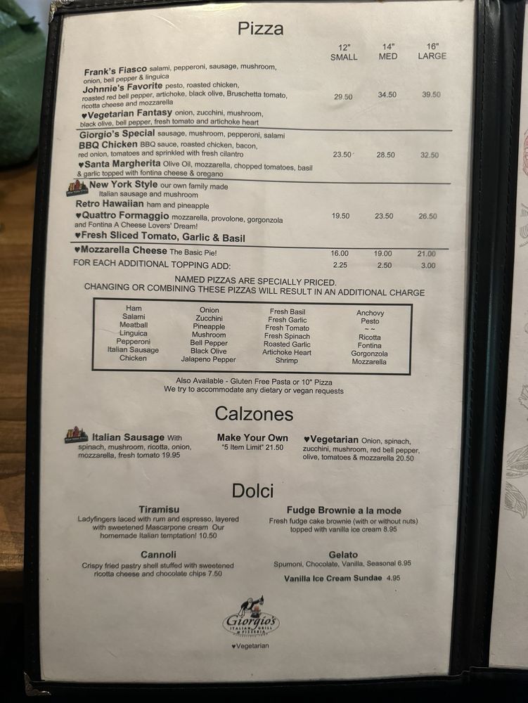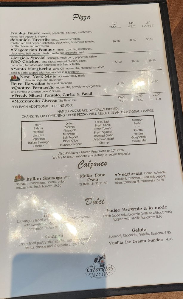 Giorgio’s Italian Grill and Pizzeria Menu (Update 2025)