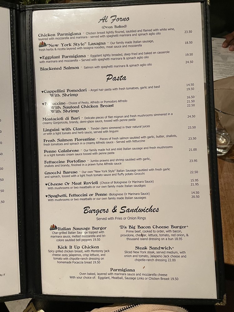Start your culinary journey with their delectable antipasti, like the Calamari Fritti and La Bruschetta, both perfect for sharing. For the pasta lovers, don’t miss the rich Mostaccioli Di Bari or the delightful Fettuccine Portofino, bursting with flavor.